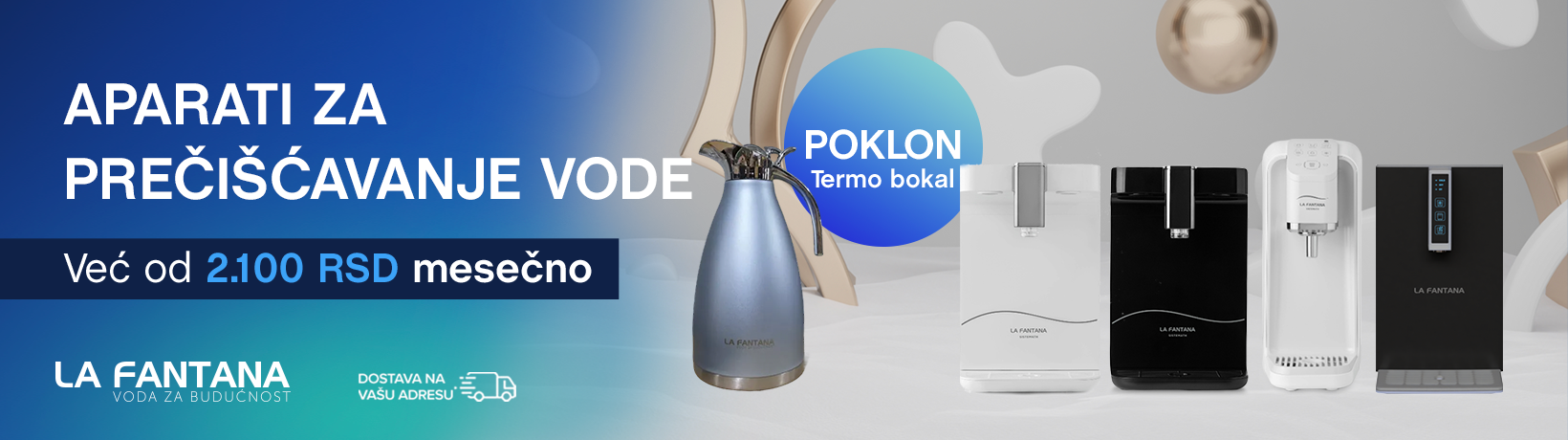Sistemath Averio Home Aparat za hladnu i toplu vodu, opremljen sistemom za prečišćavanje visokih performansi sa četiri filtera i UV sterilizacijom.